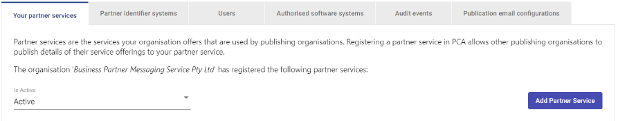 - Click on the following link to register your business partner organisation to PCA: https://pca.digitalhealth.gov.au/PcaPortal/organisation/participating/add-edit?subscriber=true